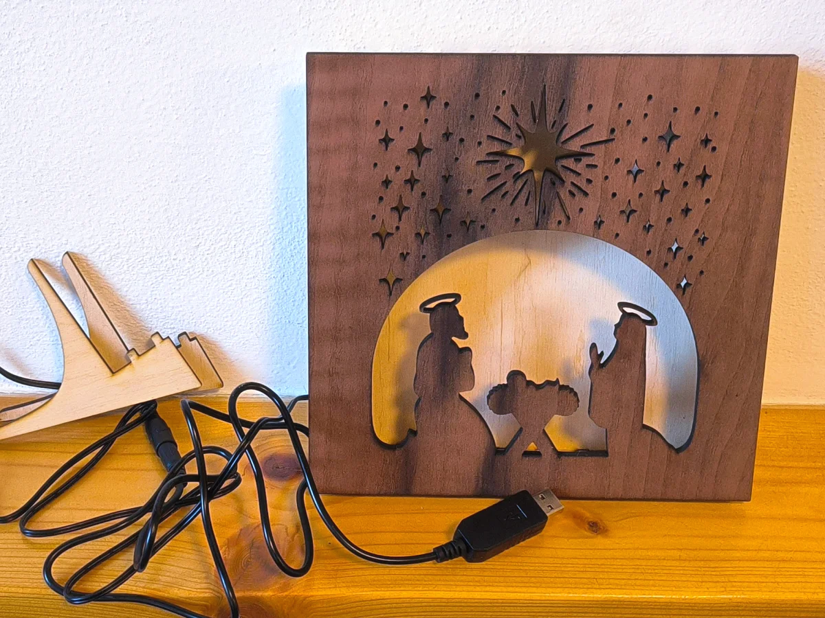 K betlémům doporučuji volit Americký ořech, jehož tmavší barva krásně zvýrazňuje výjev na světlém topolovém pozadí.